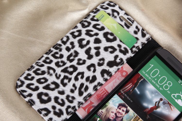 HTC One2/M8 皮套 錢包款手機套 One+/M8x 左右開翻 支架可插卡 豹紋保護套外殼 包郵