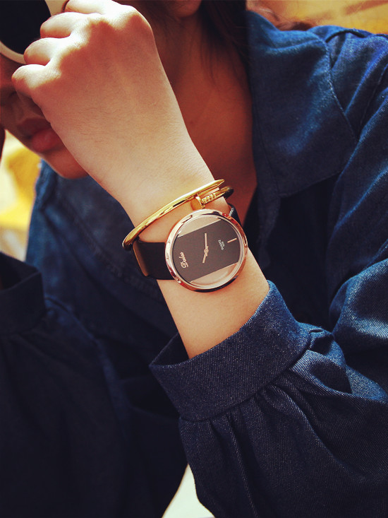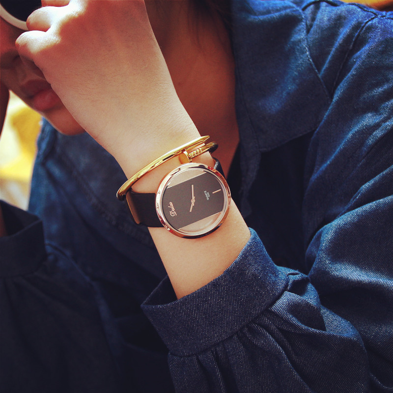 韓國手表女學生時尚雙面鏤空石英表男女士情侶表時尚休閑手表男潮