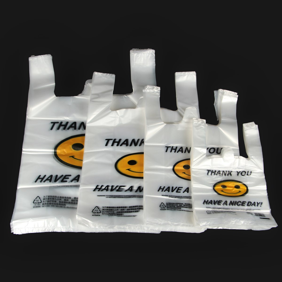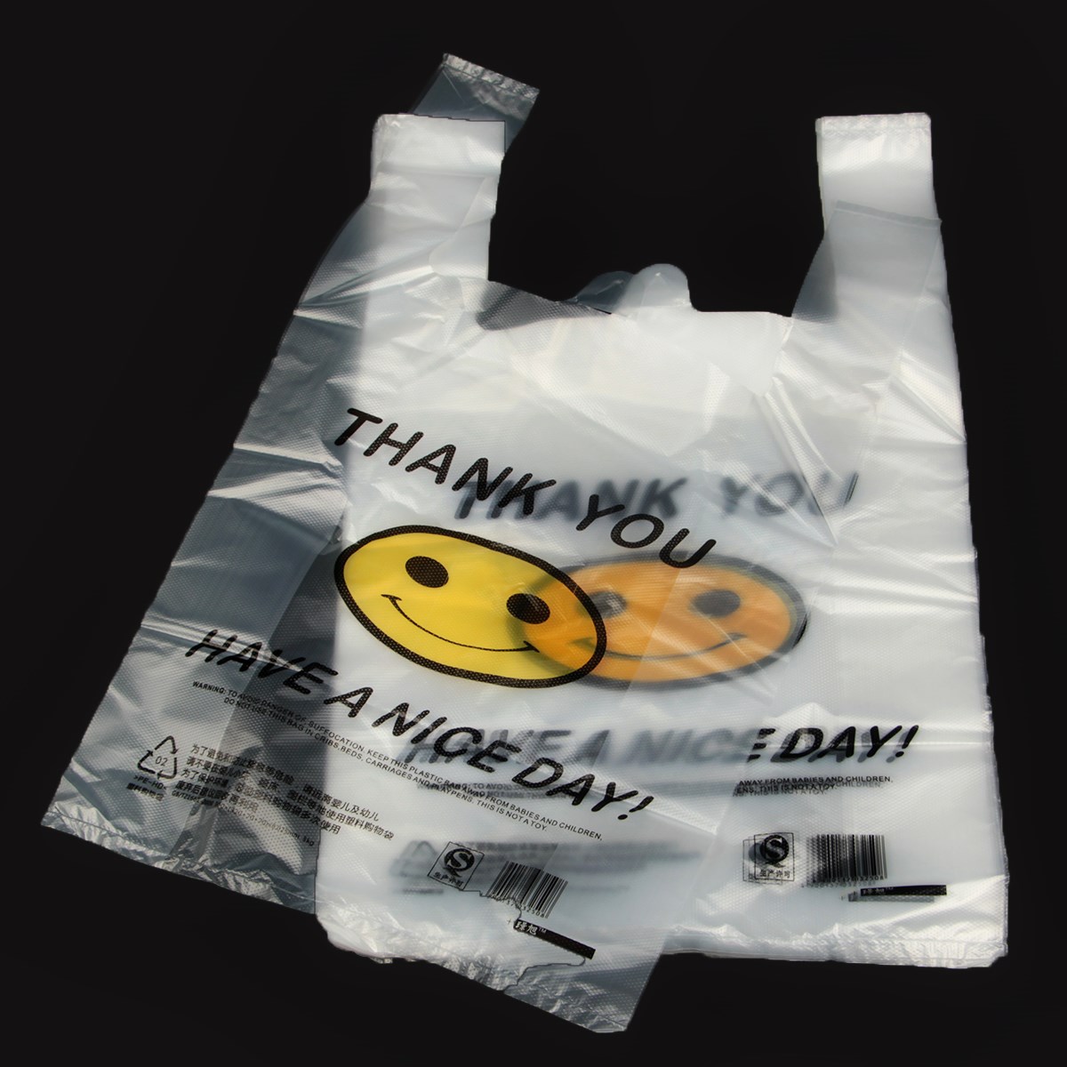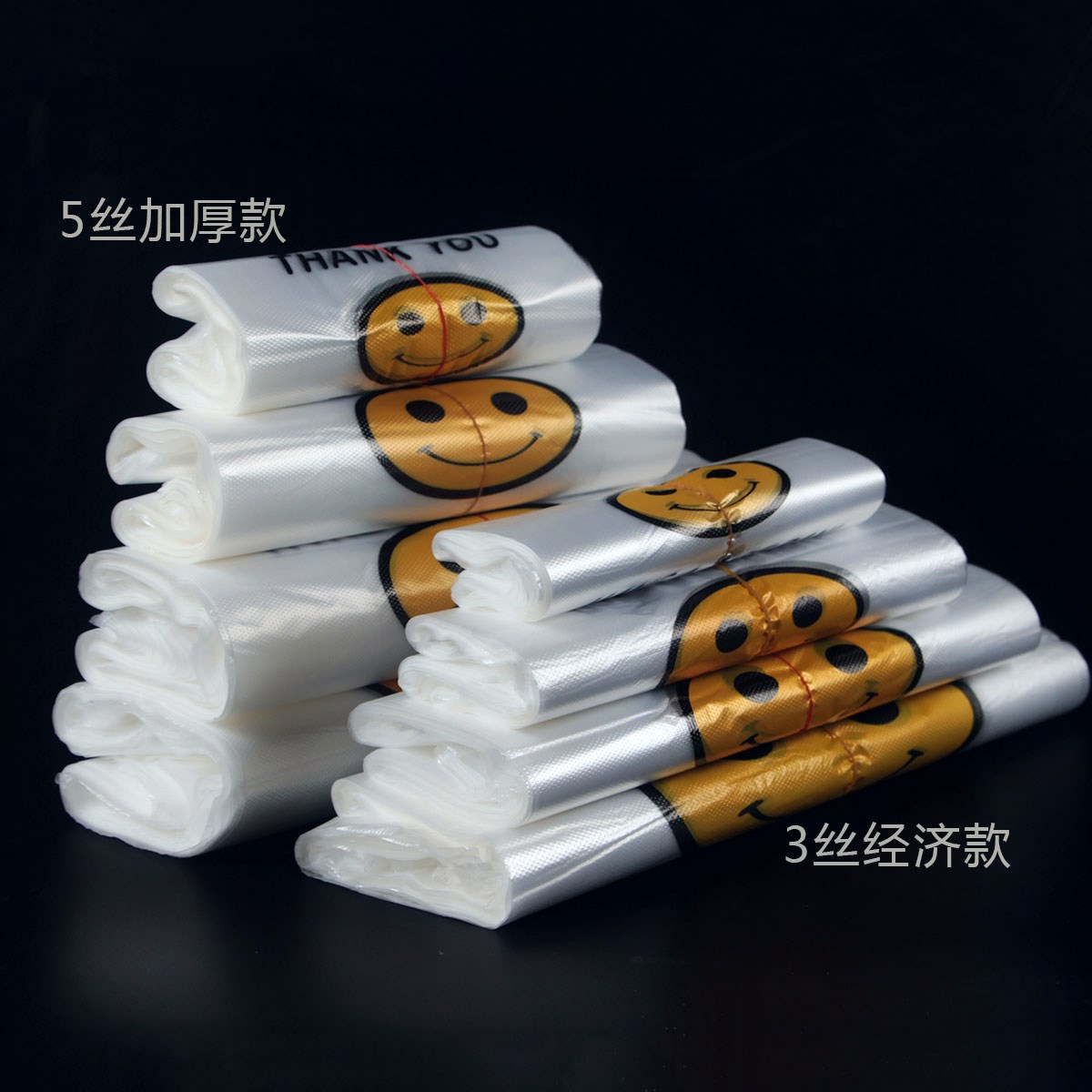 新品不斷增加:新添加超大號45*68笑臉袋 厚度雙層5絲,尺寸:寬45cm×含提手總長68cm×側邊撐開寬度20cm,提手長度約20cm,50只/捆,歡迎選購!