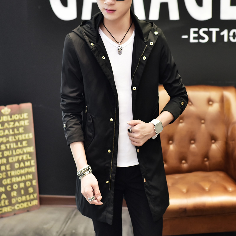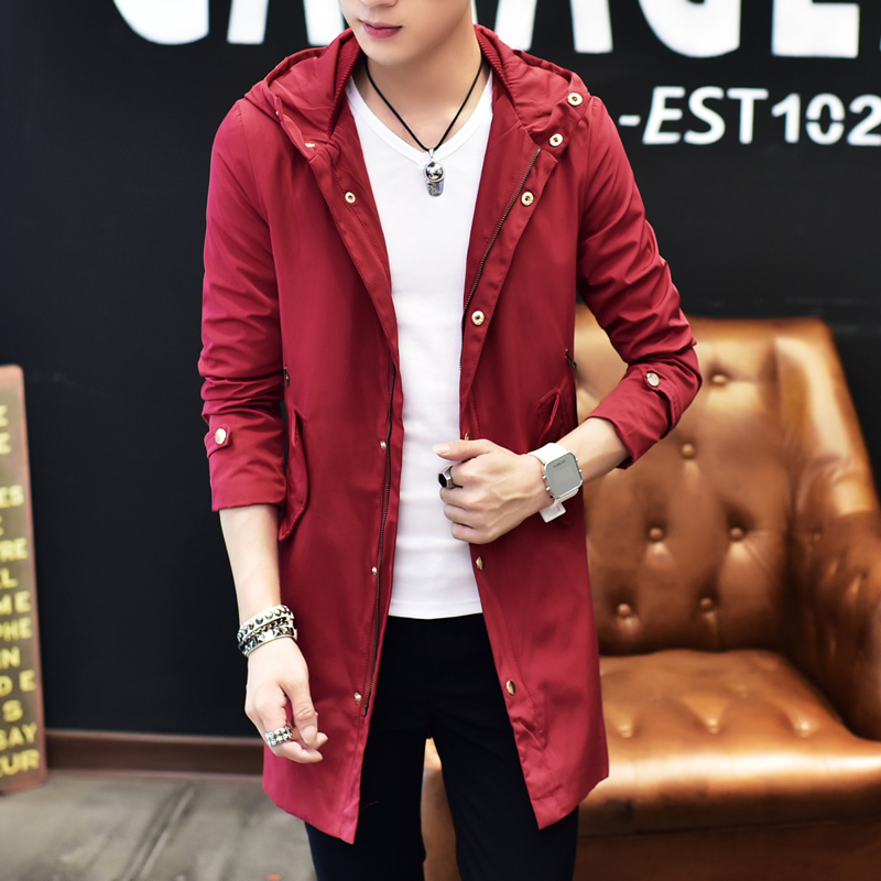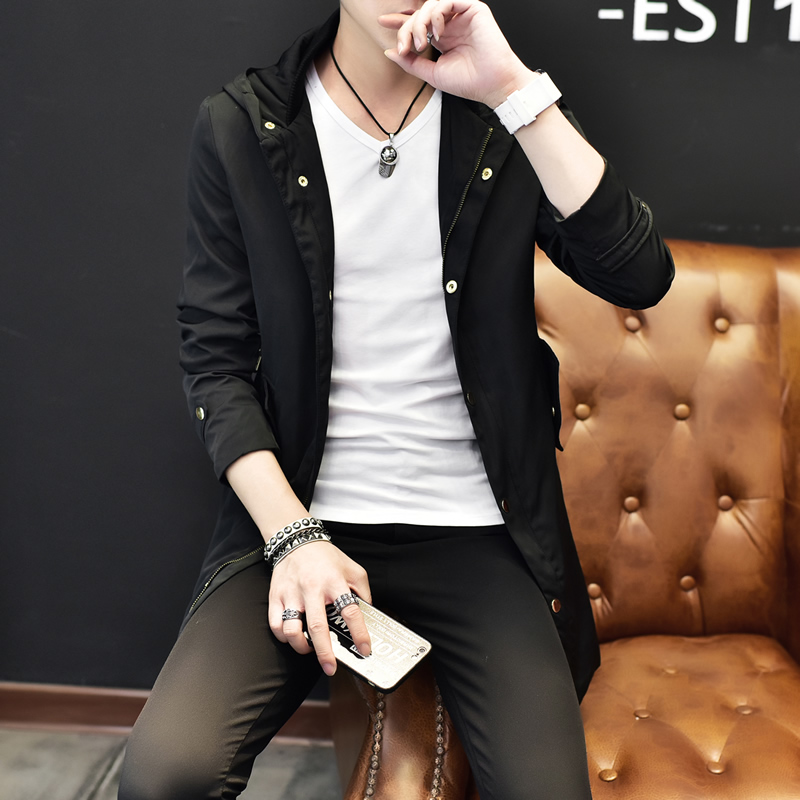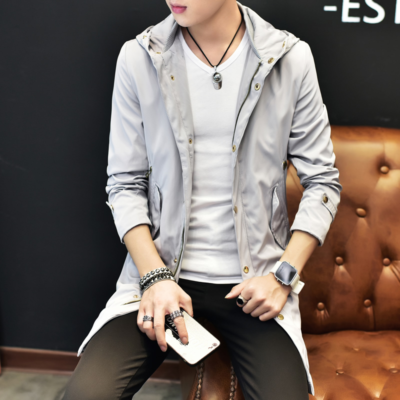 / 春秋季英倫連帽風衣男士中長款韓版修身外套大碼大衣潮男裝