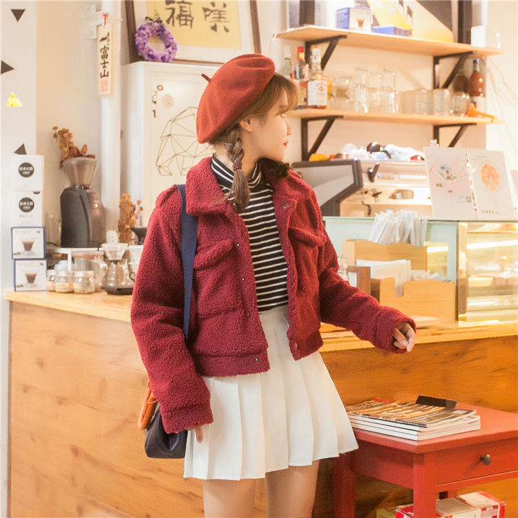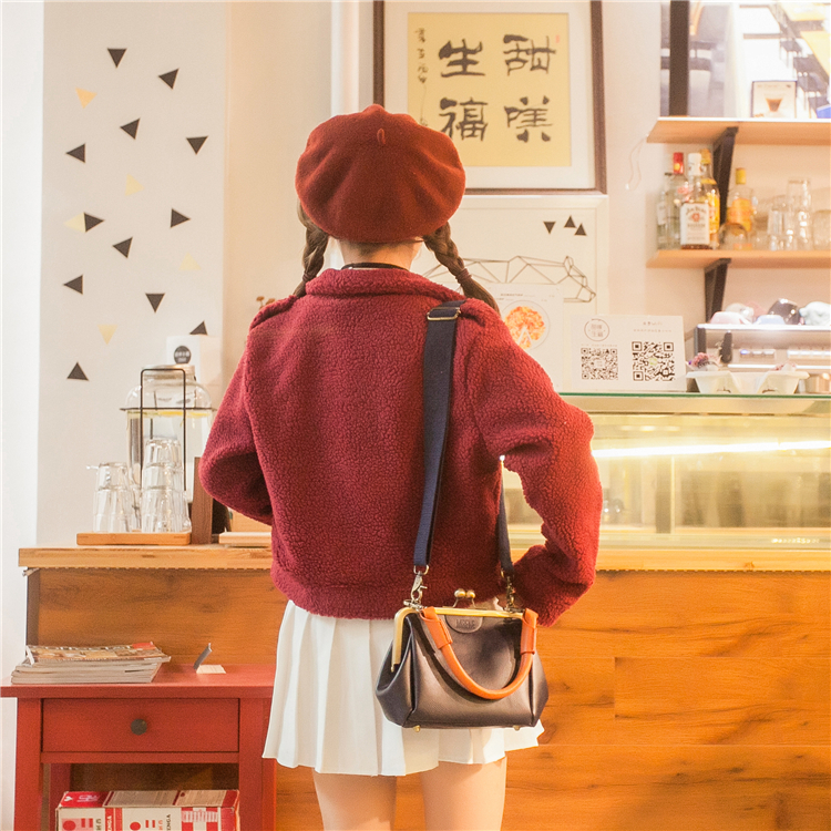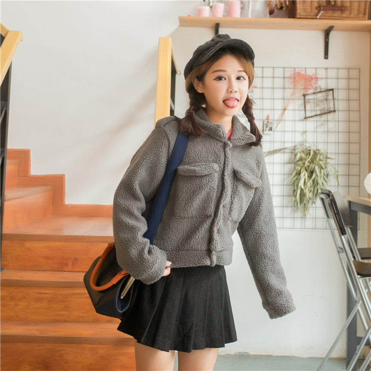 很萌的一款羊羔毛短外套
