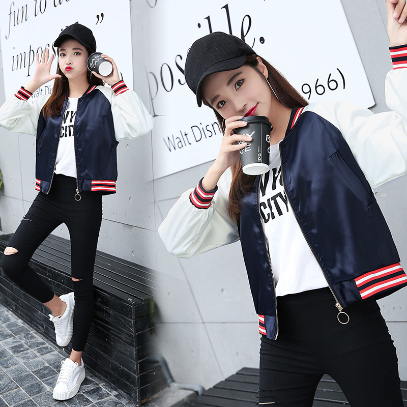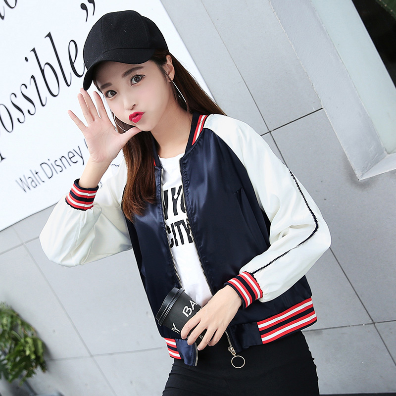 / 棒球服女2017新款秋緞面韓版學生寬松bf刺繡仙鶴情侶夾克短款外套