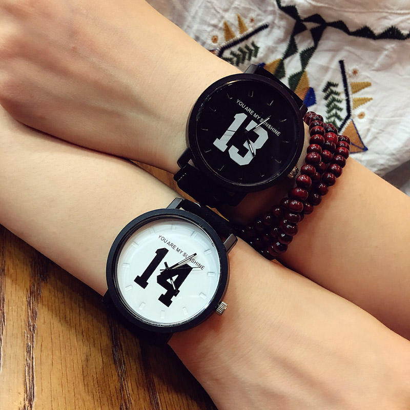 韓版潮流早安晚安1314手表女學生表男表情侶表時裝氣質簡約休閑表