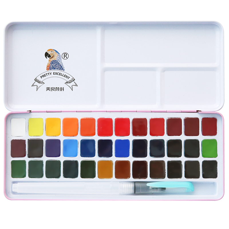 云木雜貨 美良24/36色固體水彩顏料盒裝便攜戶外寫生套裝