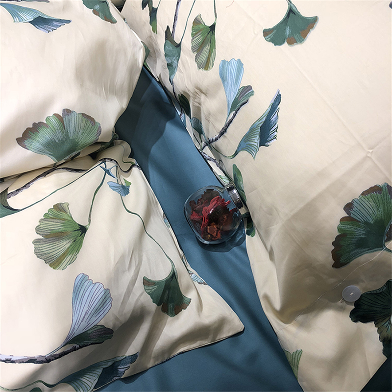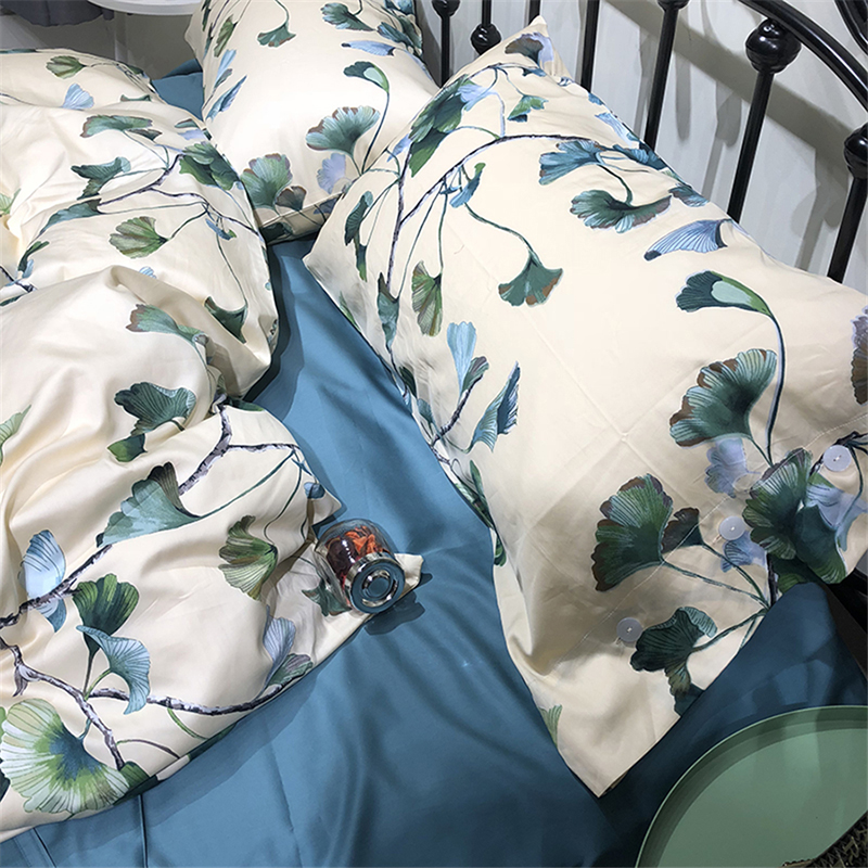 [白色莫奈]60支純棉貢緞四件套植物花卉歐式床上套件標準四件套