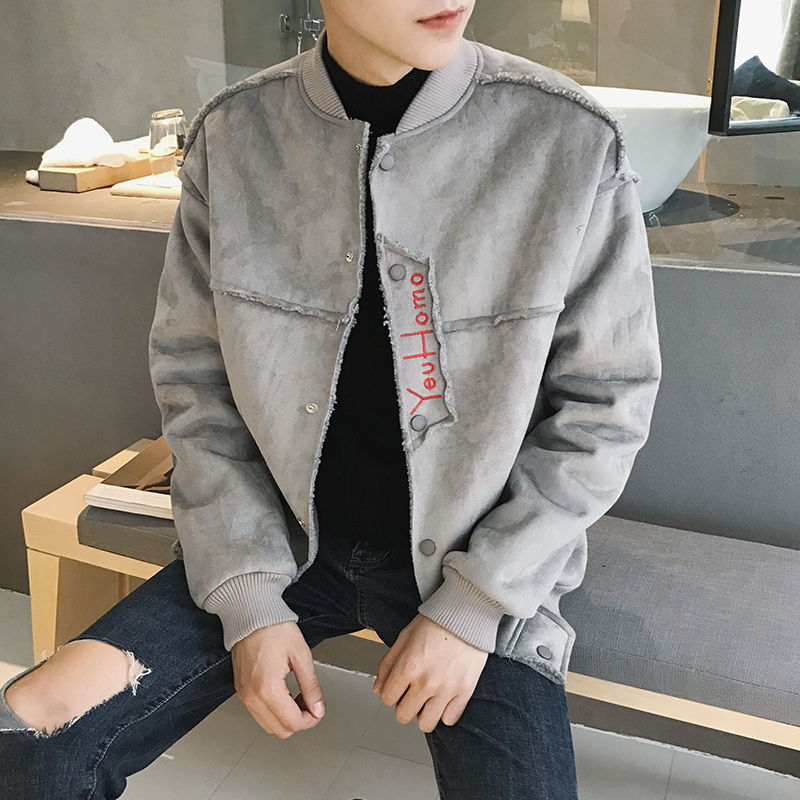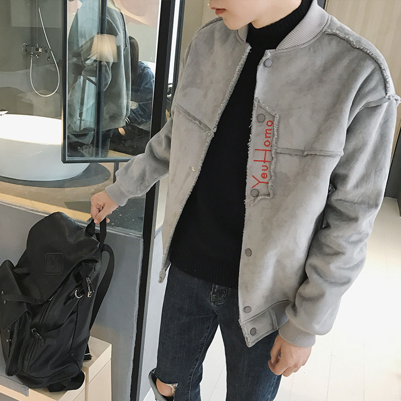 冬裝新款日系字母繡花棒球服外套男士麂皮絨夾克