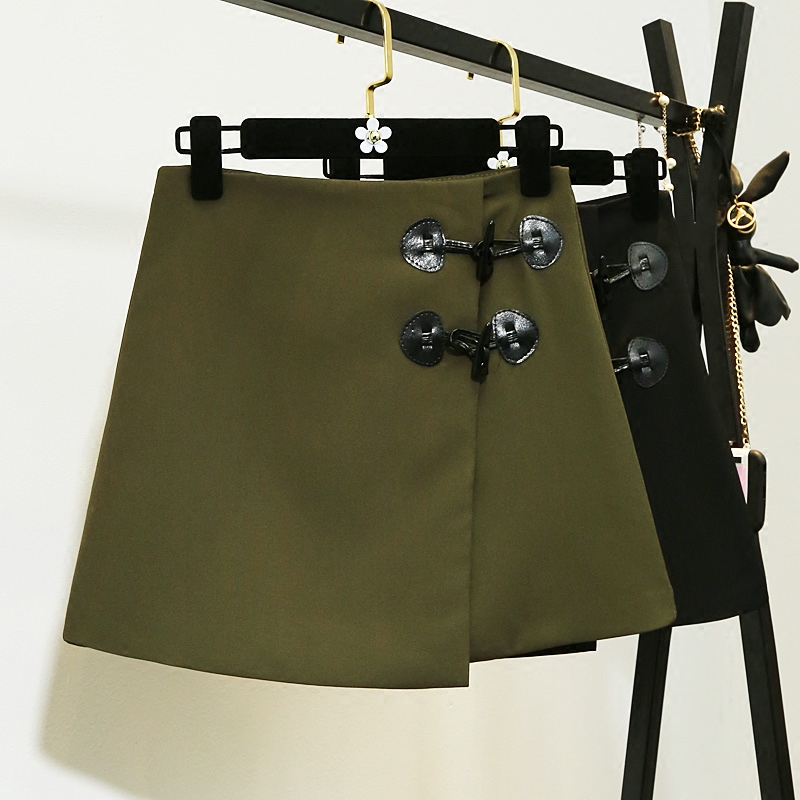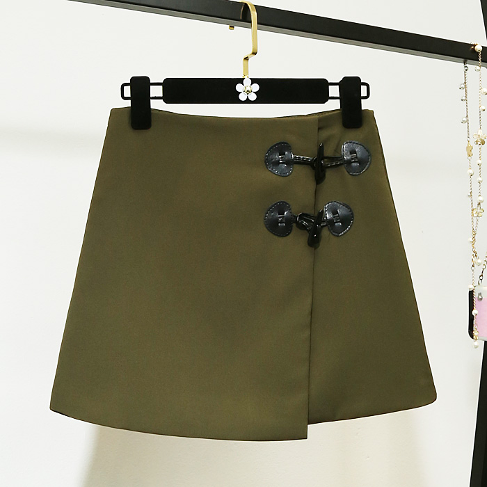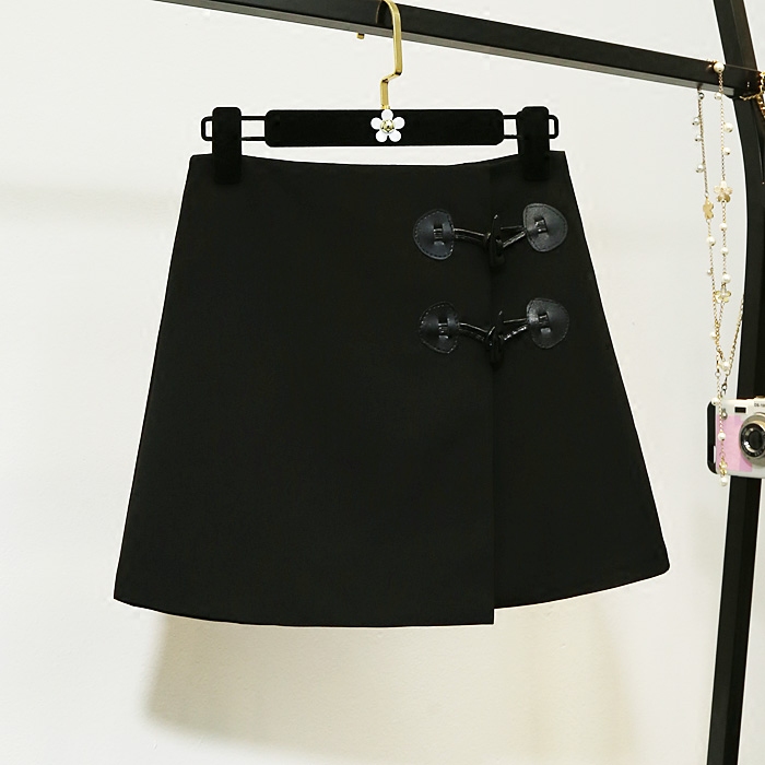 春夏季新款韓版牛角扣高腰半身裙百搭顯瘦不規則A字裙短裙女