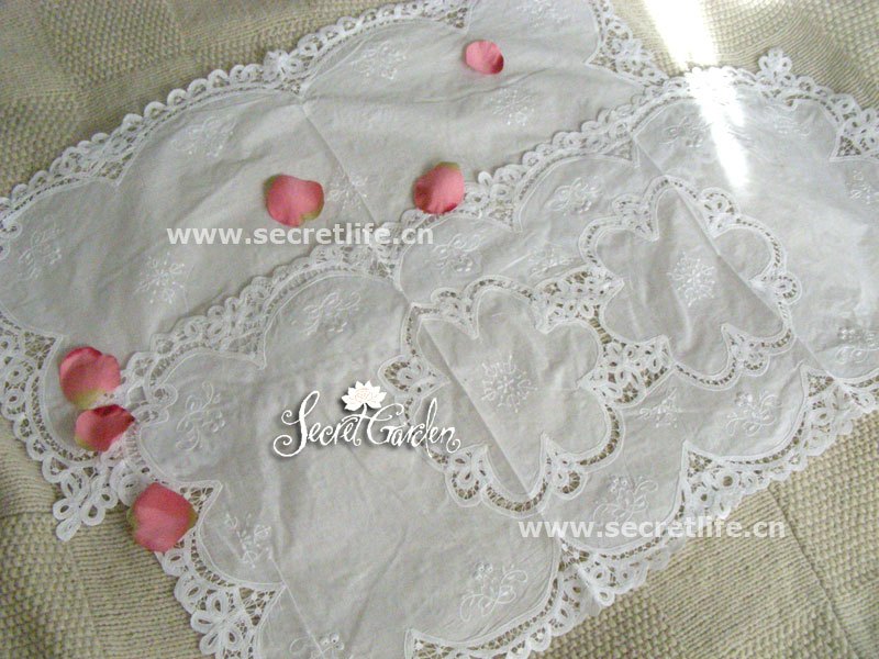 關于她:晶瑩剔透,清新如百合,淡雅古典氣質,千絲萬縷纏綿……潔白剔透的棉布上點綴線條典雅而飽滿的手工繡花,細小鏤空增添層次感,將整塊桌布的清新美感進一步提升……價格十分優惠,細工百帶麗比普通百帶麗蕾絲品質更勝一籌,一共六件,可組合使用,多款搭配更添趣味,價格十分優惠,平均每件才十幾元,考慮到現在的繡匠的人工工費每天至少80元,要忙碌一整天也繡不完其中一片,這是可以傳代的手工藝品,盼喜歡的朋友都能收藏,作為贈品亦尤為別致而令人難忘…………可搭配同系列細工百帶麗蕾絲桌布五件套使用,請點此瀏覽