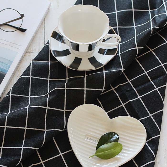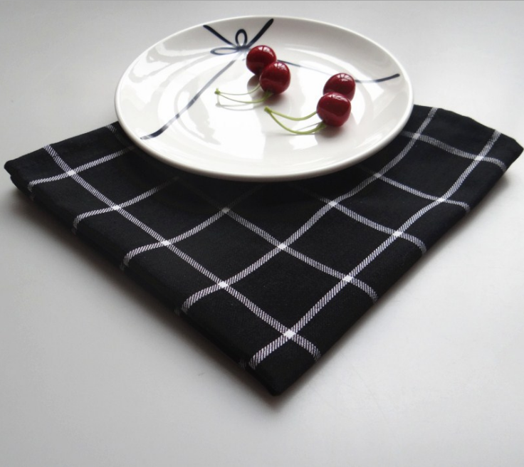 ins黑色條紋格子純棉質餐墊隔熱餐巾茶巾背景布耐臟美食拍照