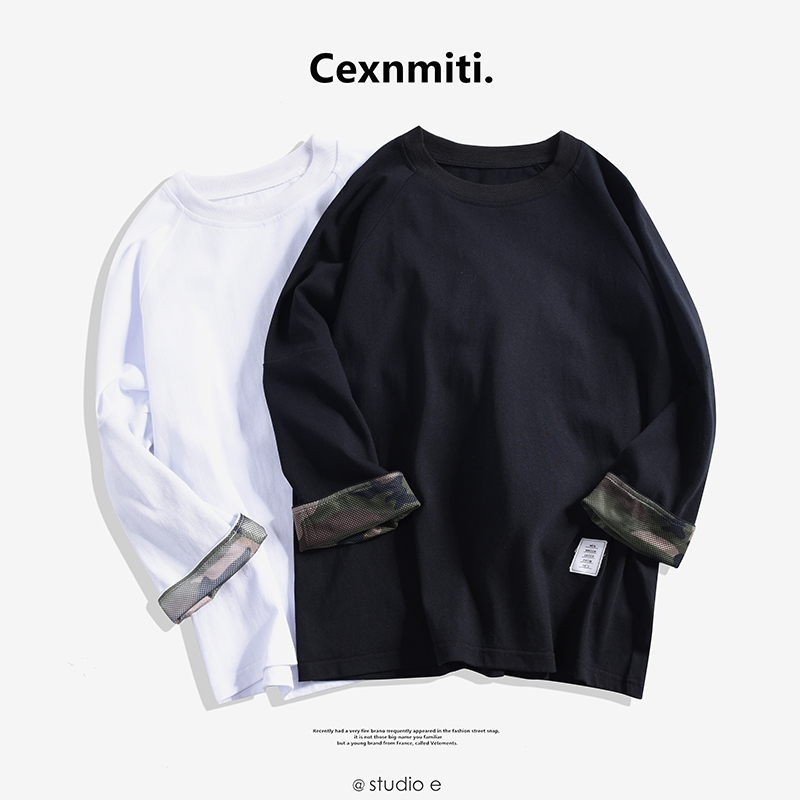 / 男裝韓版撞色迷彩袖寬松半袖T恤春季男士五分袖T恤