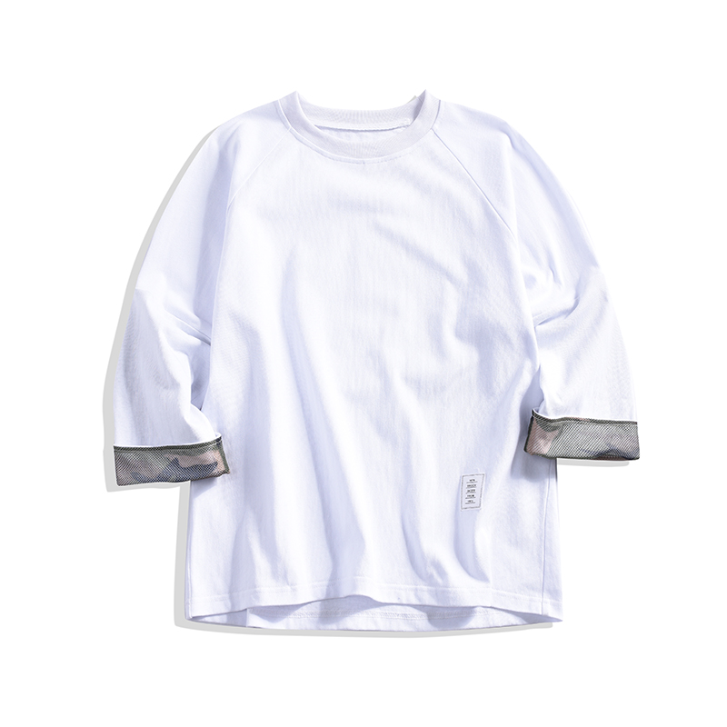 男裝韓版撞色迷彩袖寬松半袖T恤春季男士五分袖T恤