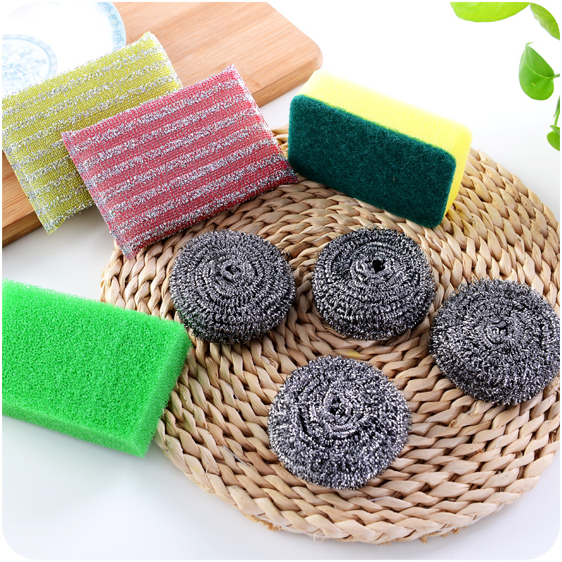 / 廚房鋼絲球不銹鋼鋼絲棉鐵絲球刷鍋洗碗刷子百潔布海綿清潔三件套