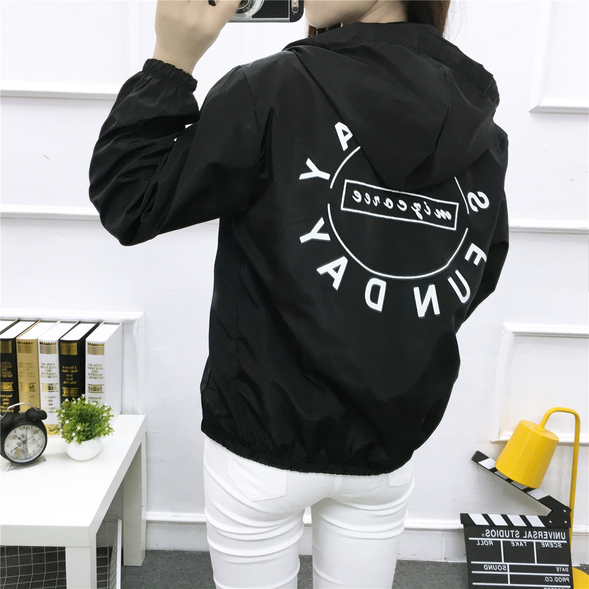 2017夏季新款印花寬松連帽防曬衣服女學生運動短外套薄夏天防曬衫