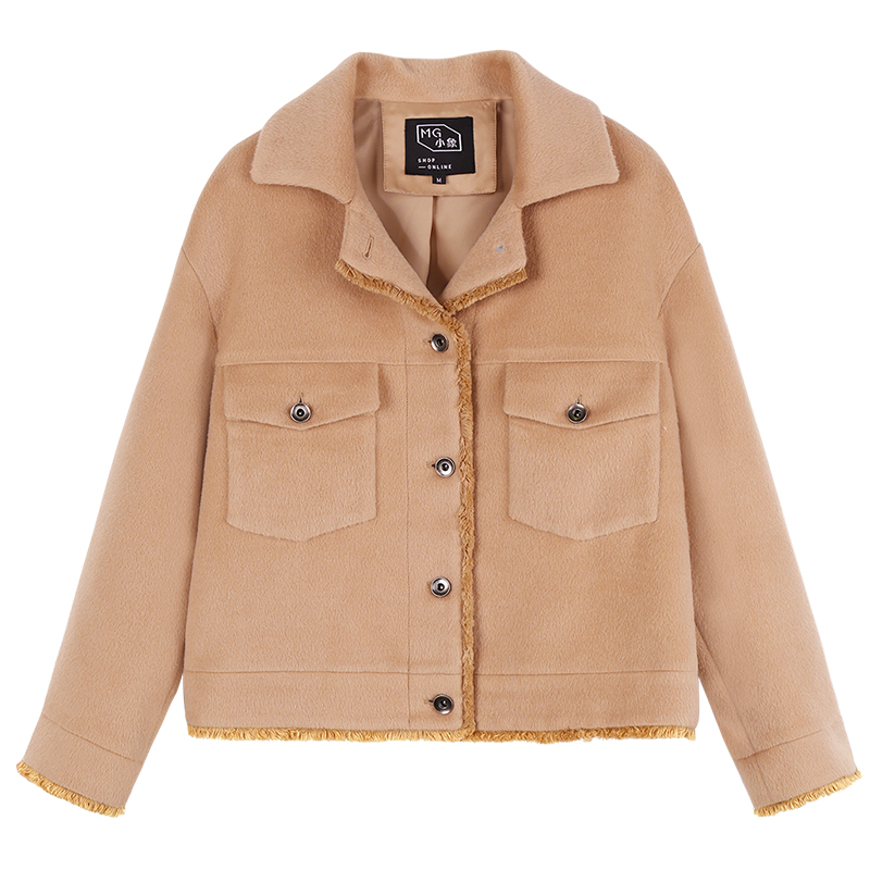 / MG小象短款毛絨外套女寬松復古拼接夾克秋冬2018新款氣質駝色上衣