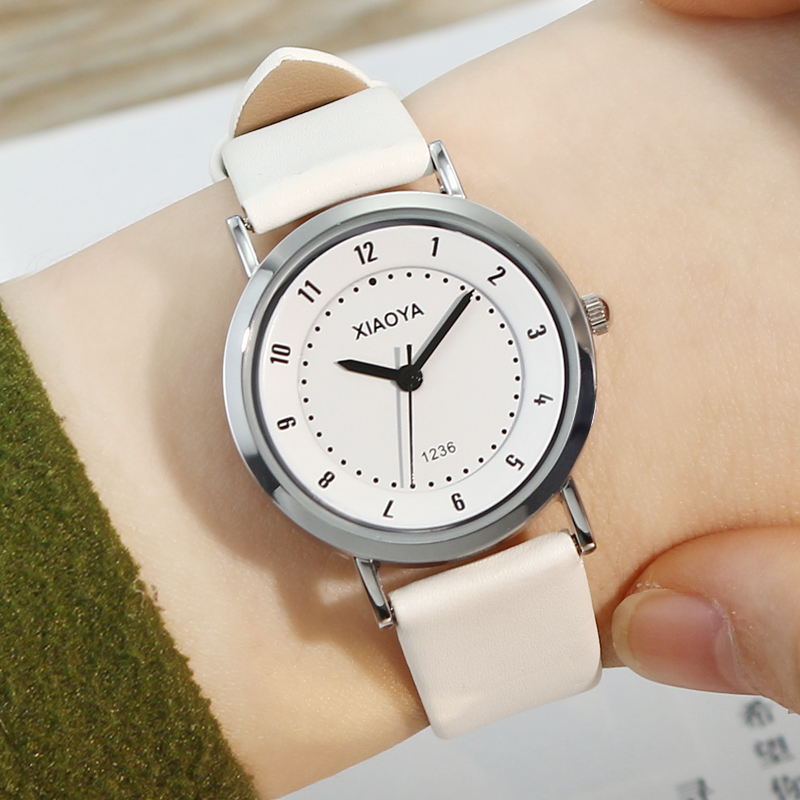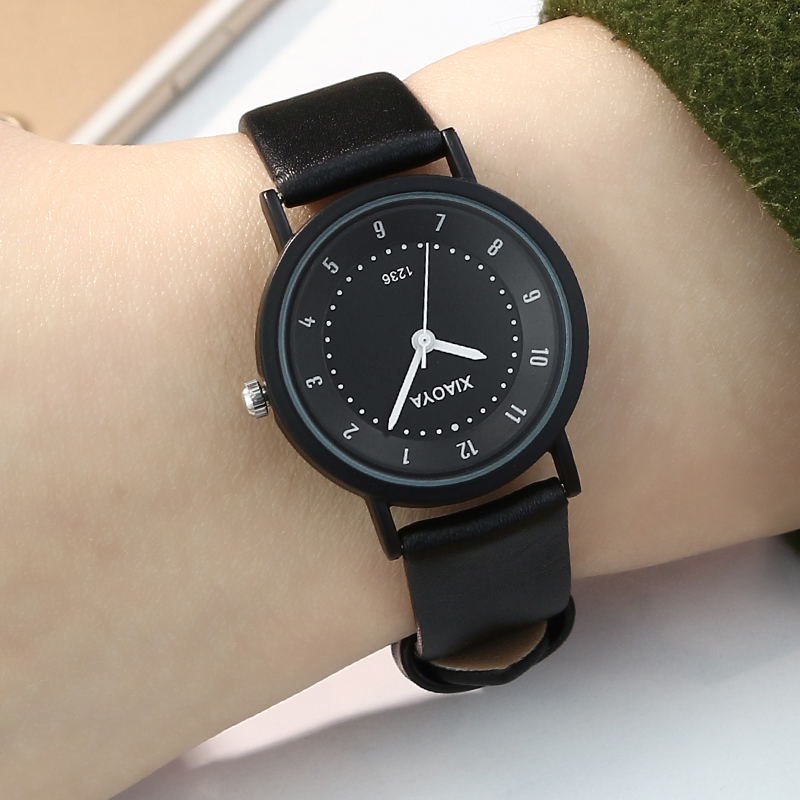 韓版時尚潮流手表女學生韓版簡約休閑皮帶男表石英表情侶手表一對