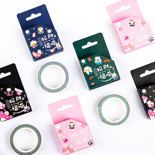 / 云木雜貨 創意和紙膠帶海浪招財貓手繪手賬相冊裝飾手撕貼紙