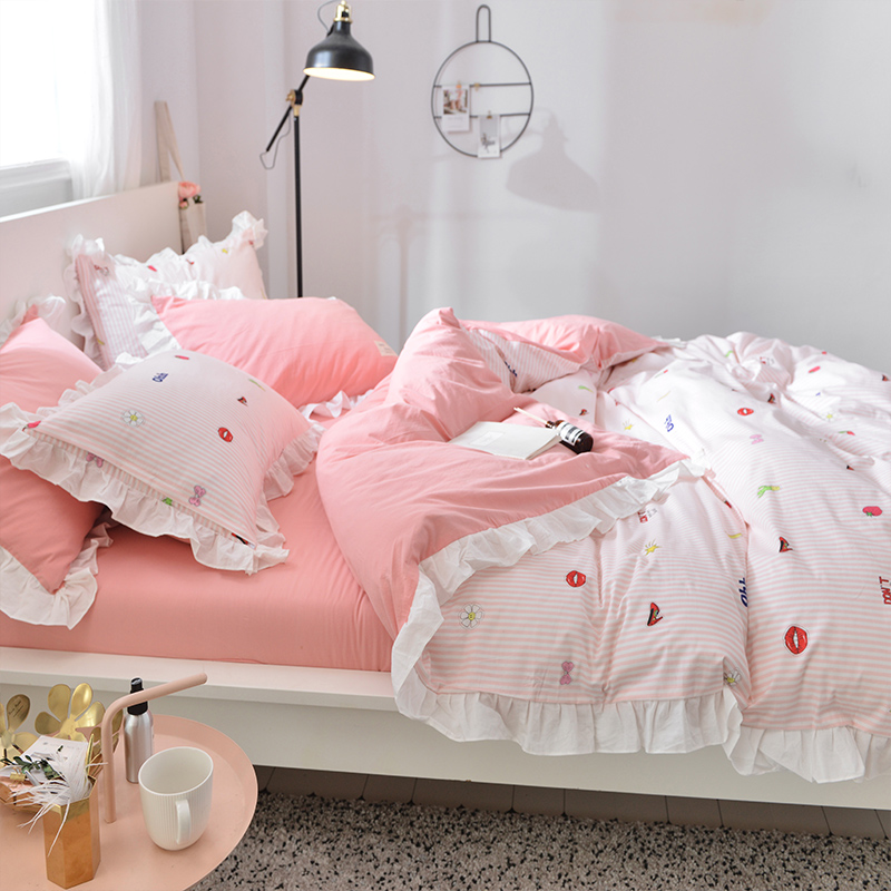 / 2018新品 韓版公主風水洗棉 柔軟舒適清新 富有質感 純棉四件套