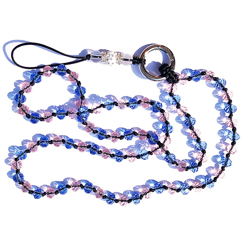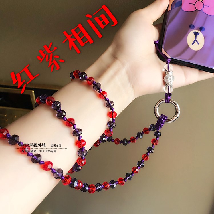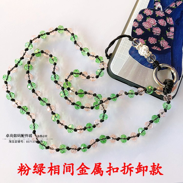 / 長款手機通用掛繩掛脖手工水晶掛鏈吊繩掛件女款牢固防丟不夾發