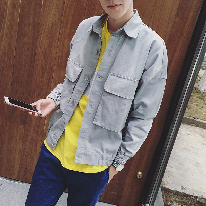 / 秋季新款港風文藝大口袋韓版男士寬松翻領短款夾克