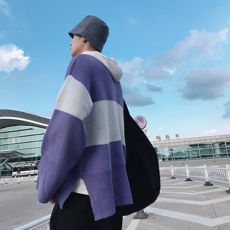 / 文藝男女店寬松套頭男士毛衣冬季潮流拼色針織衫秋季韓版帥氣外套