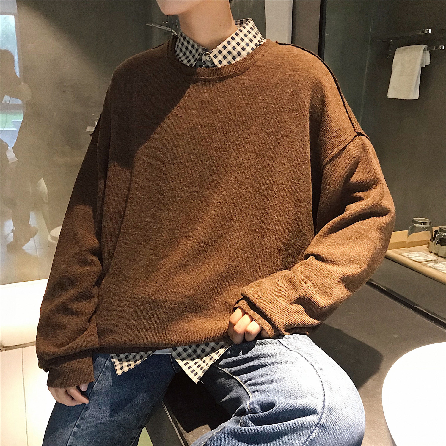 / 文藝男女店秋季韓版毛衣男士潮流chic早秋針織衫圓領套頭外套男