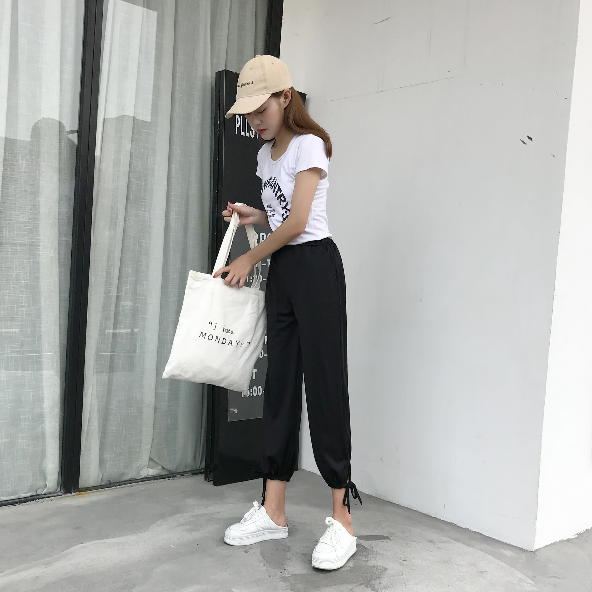 尺寸: M碼褲長83CM 腰58CM 褲腳是松緊細帶的可以調節哦 L碼褲長85CM 腰60CM 褲腳是松緊系帶的可以調節哦