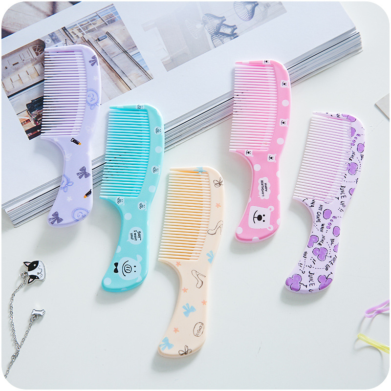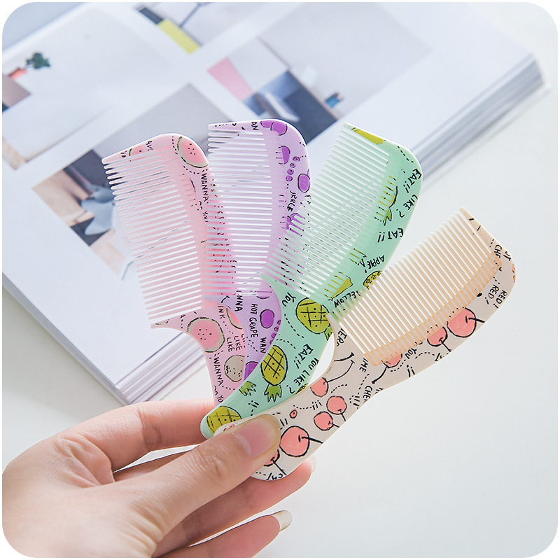 弧形卷發吹直發劉海內扣造型梳美發加厚塑料梳齒梳子卡通水果印花