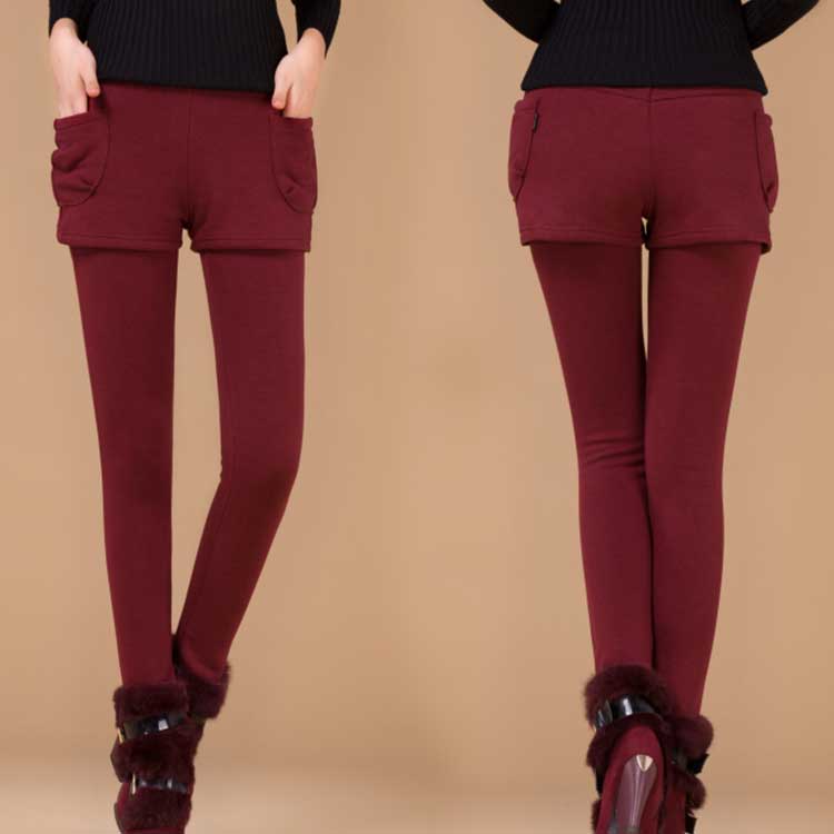 秋冬季加厚加絨外穿假兩件打底褲少女學生顯瘦假兩件連體套裝裙褲