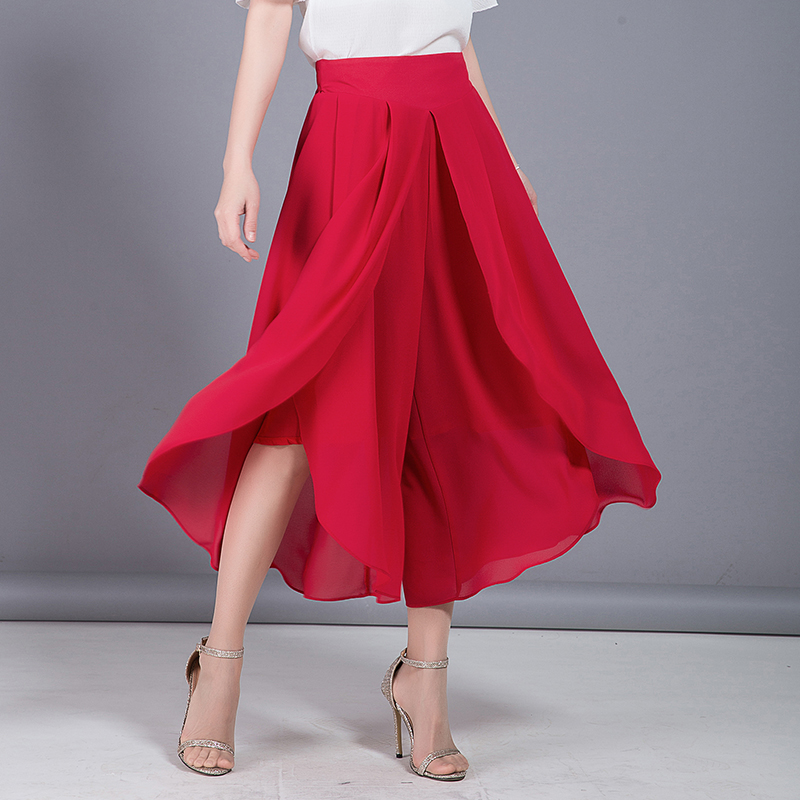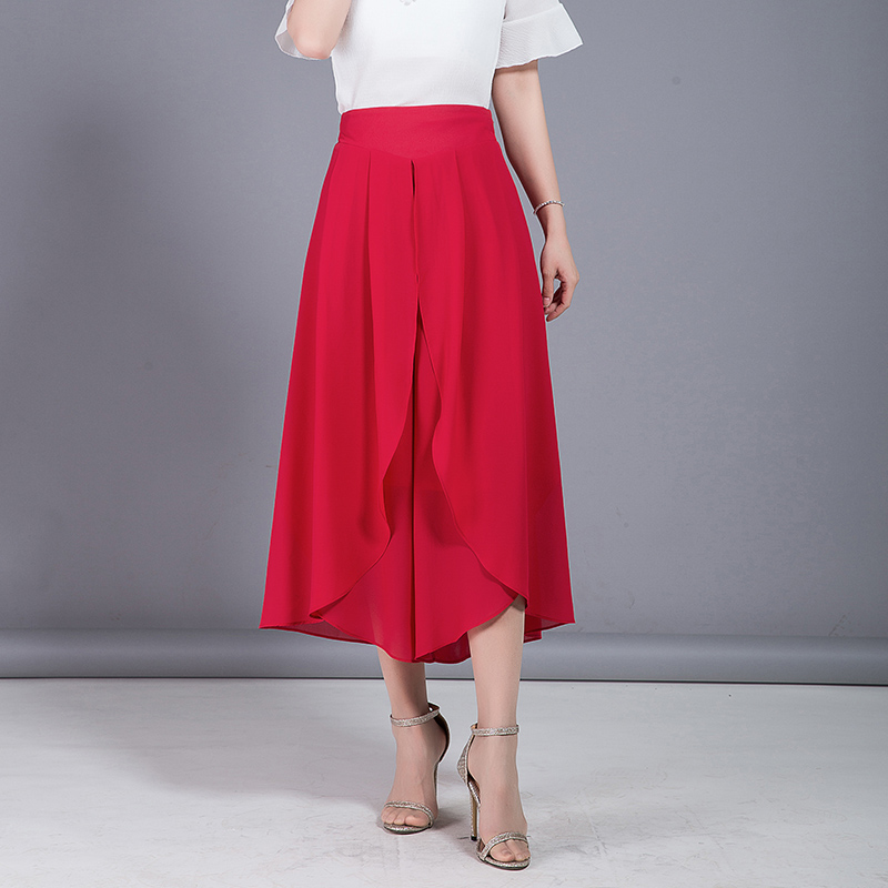 / 雪紡闊腿褲九分褲女夏季裙褲新款春夏季高腰寬松寬腿大腳褲子