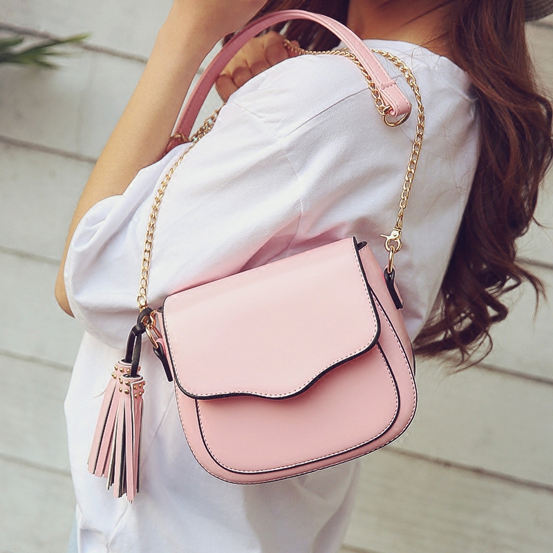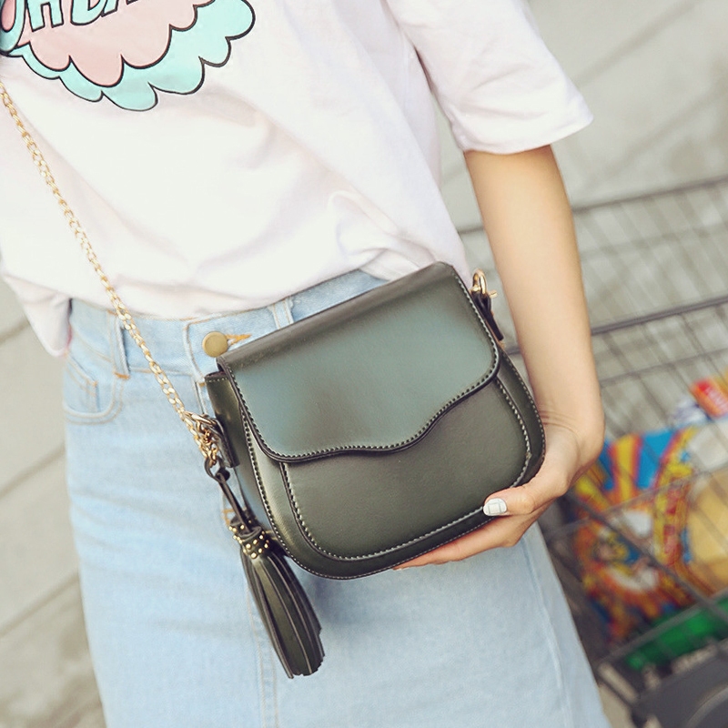 新款韓版復古簡約鏈條小包流蘇單肩女包潮百搭斜挎包女小方包