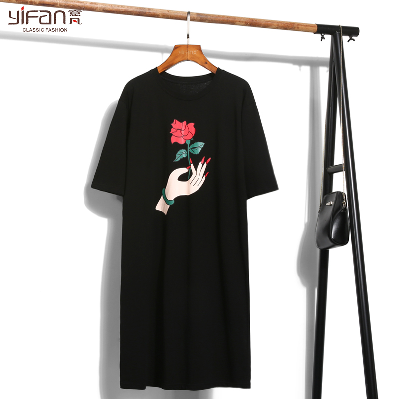 夏季新款韓版卡通印花寬松中長款短袖純棉T恤休閑百搭大碼女t夏潮