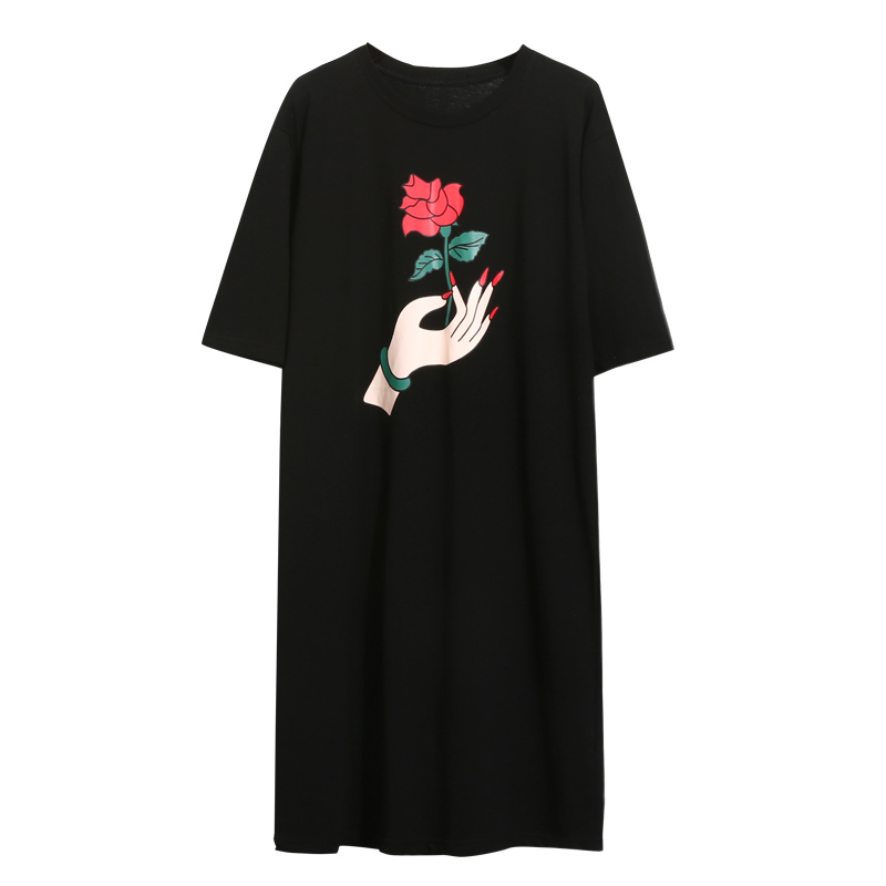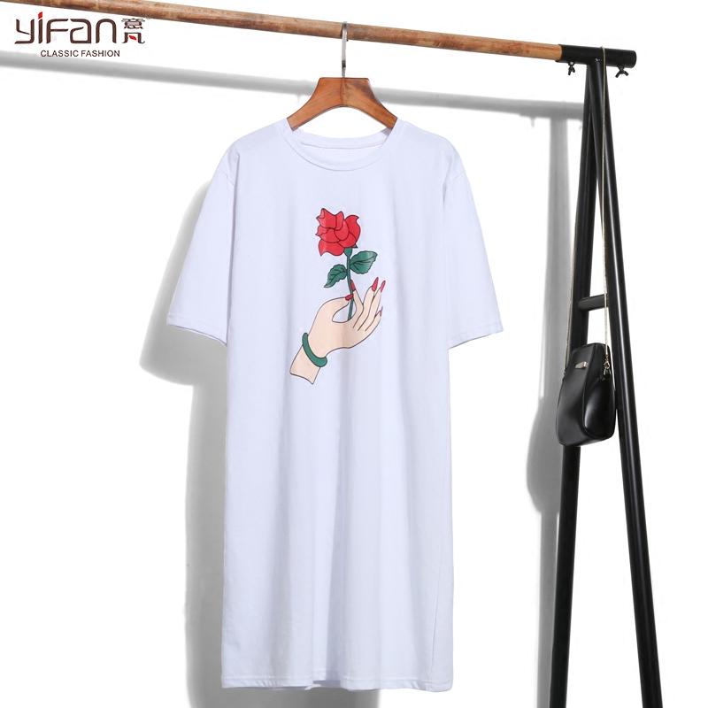 / 夏季新款韓版卡通印花寬松中長款短袖純棉T恤休閑百搭大碼女t夏潮