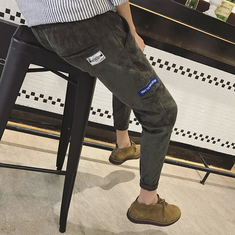 / 男裝日系小腳男士大碼休閑褲貼布撞色錐形修身男褲