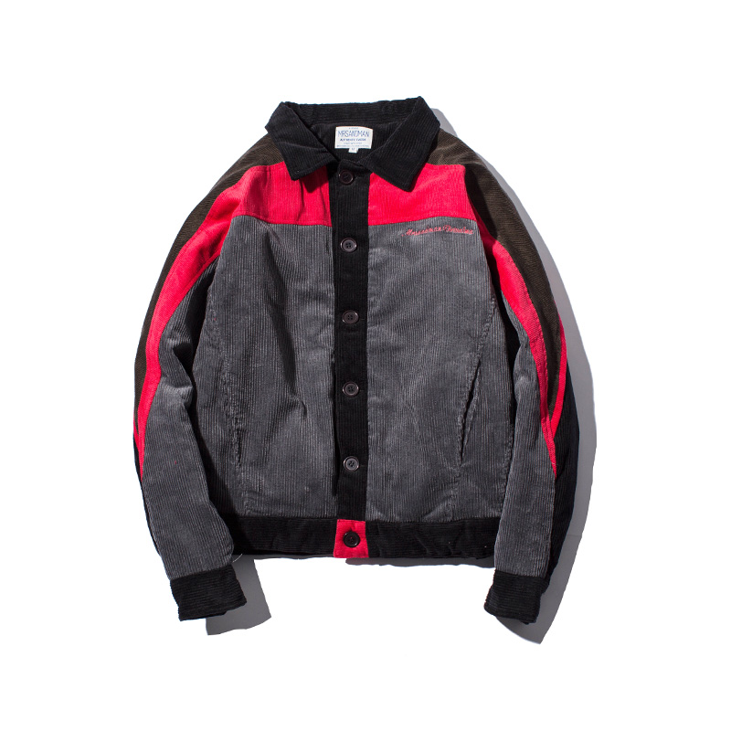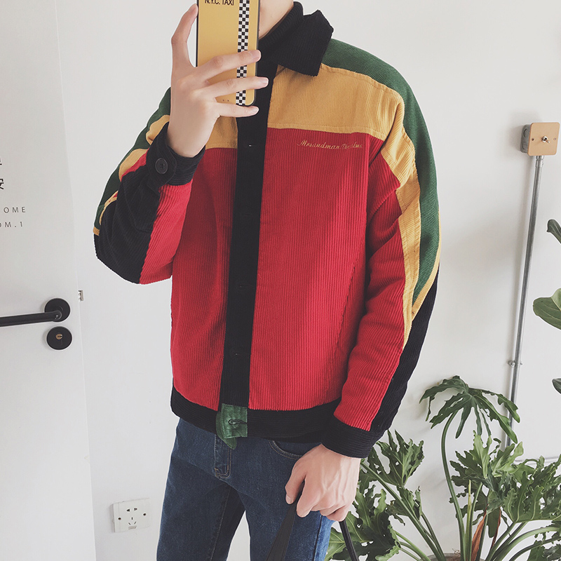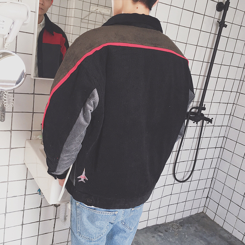 / 男裝新款撞色字母刺繡燈芯絨短款男士加厚棉衣外套