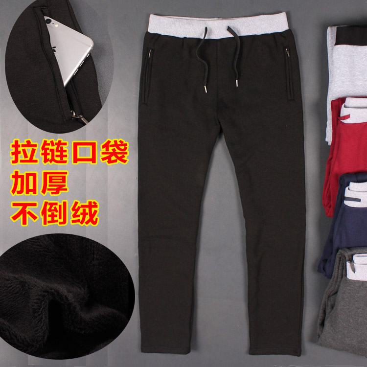/ 加厚不倒絨 雙拉鏈口袋舒適春秋時尚衛褲休閑長褲男褲寬松大碼
