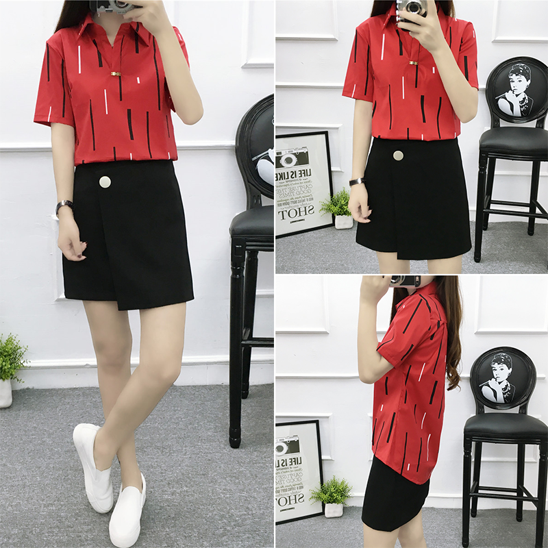 / 2017夏天新款韓版黑白豎條紋職業襯衫女短袖修身襯衣OL氣質工作服