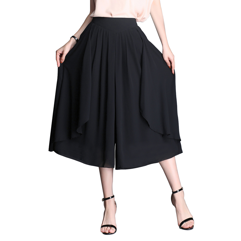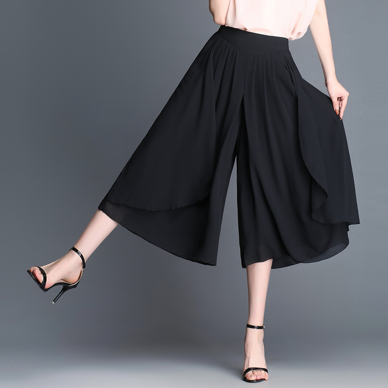 / 裙褲女夏新款高腰顯瘦韓版雪紡七分闊腿褲夏季女九分薄款褲裙