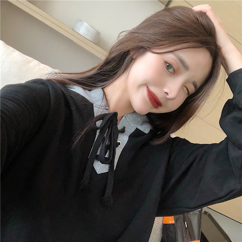 學生新款寬松中長款連帽綁帶加絨加厚套頭chic衛衣