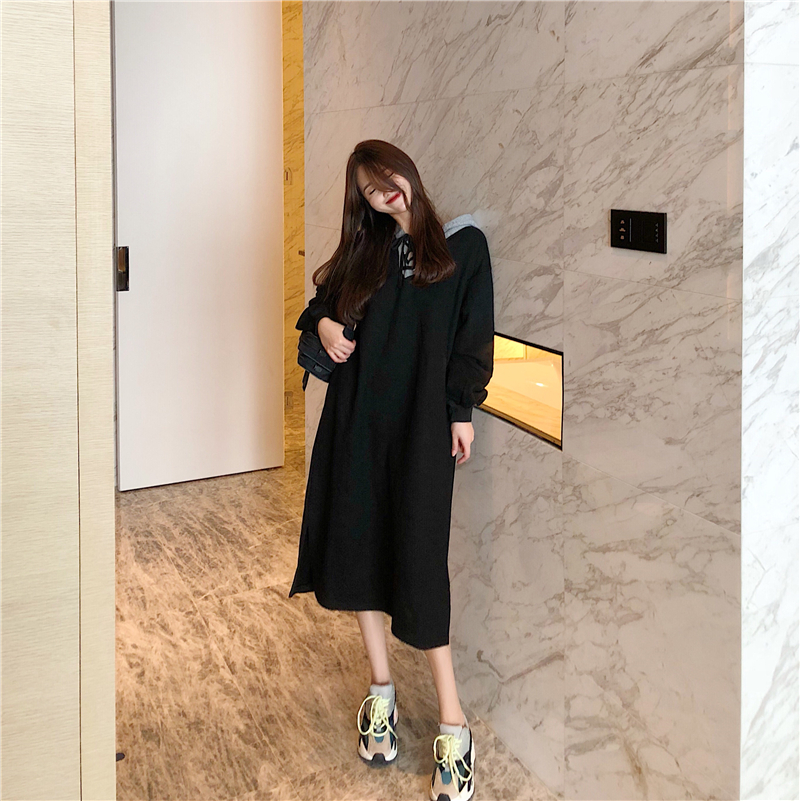 / 學生新款寬松中長款連帽綁帶加絨加厚套頭chic衛衣