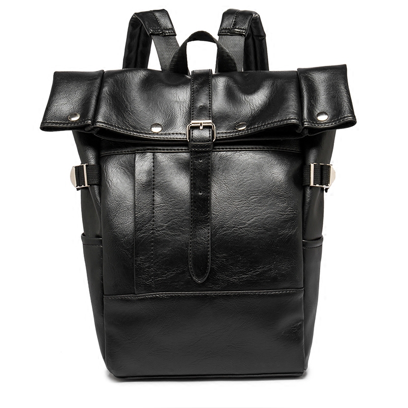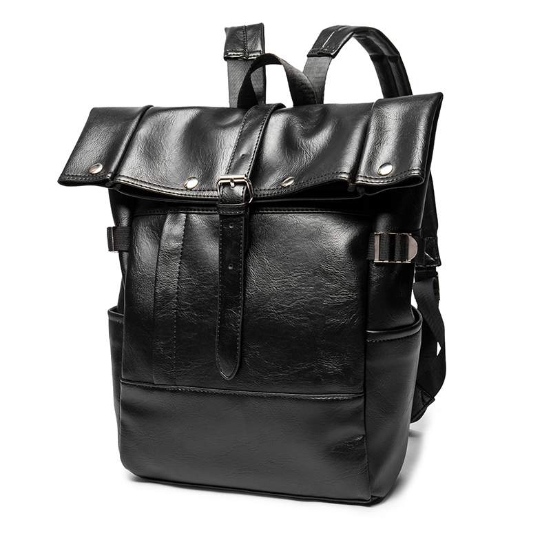 / 韓版新款男背包潮流皮質大容量雙肩包休閑旅行包翻蓋書包潮