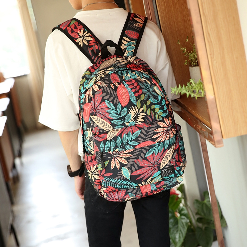 / 新印花雙肩包女帆布韓版潮休閑背包中學生書包學院風電腦包男