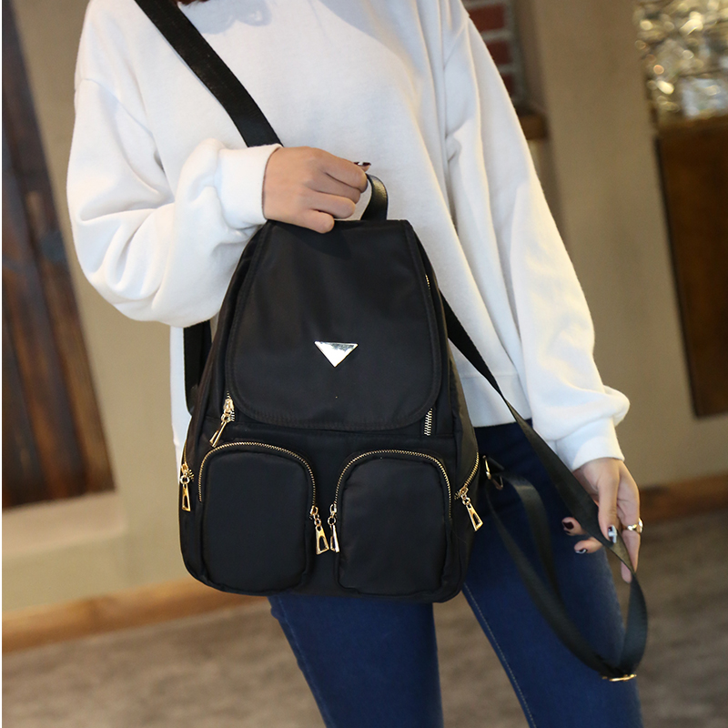 新款韓版雙肩包女學院風百搭休閑防水尼龍背包牛津布學生書包