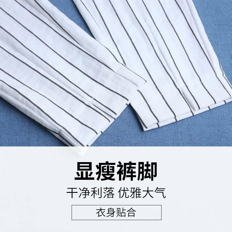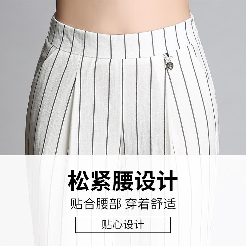 / 春夏哈倫褲寬松蘿卜褲大碼闊腿九分褲女黑色休閑條紋西裝褲女褲子