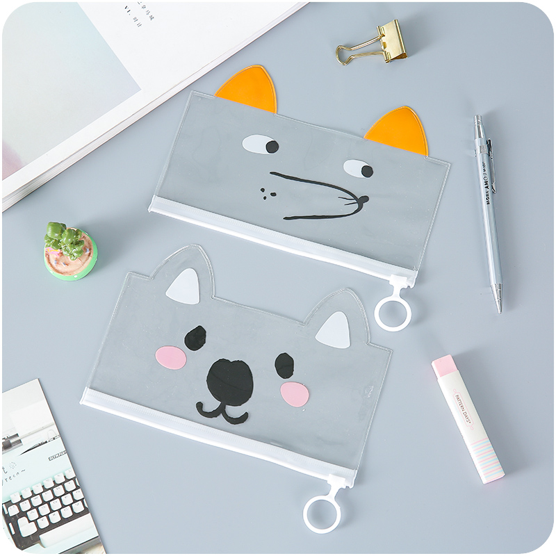 / 韓國文具透明PVC印花卡通可愛筆袋文具袋鉛筆盒眼鏡盒收納袋防水