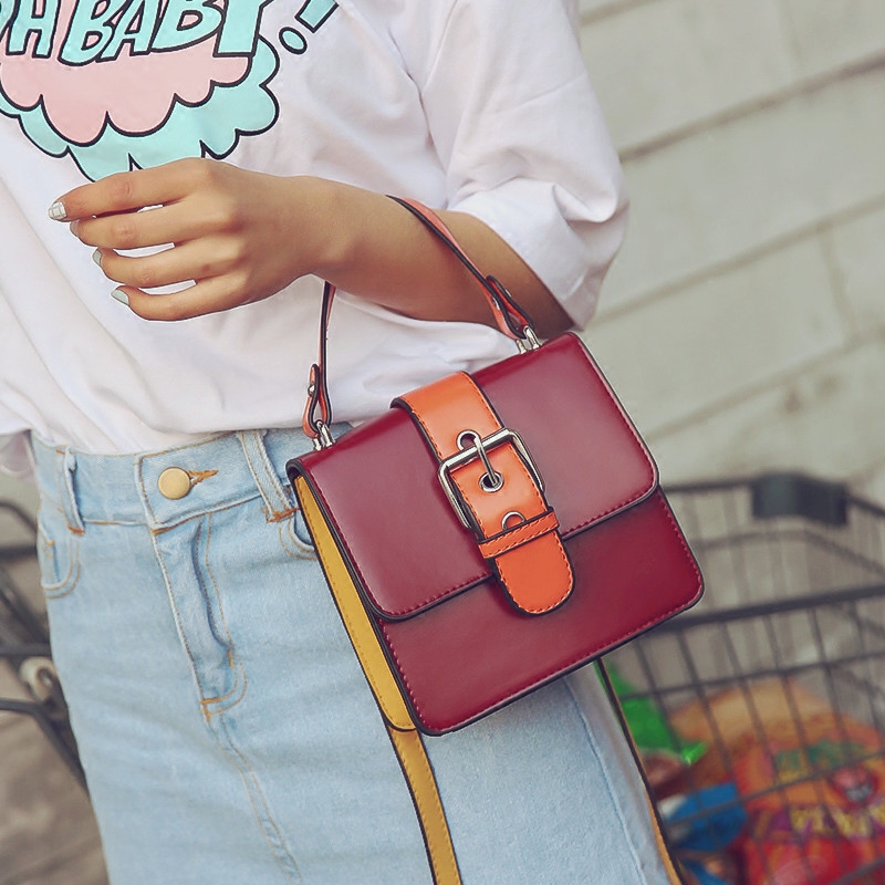 / 包包女新款潮撞色手提包韓版迷你小方包單肩女包百搭斜挎小包