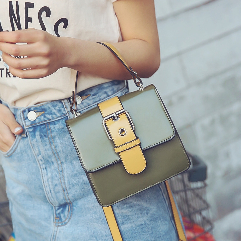 包包女新款潮撞色手提包韓版迷你小方包單肩女包百搭斜挎小包