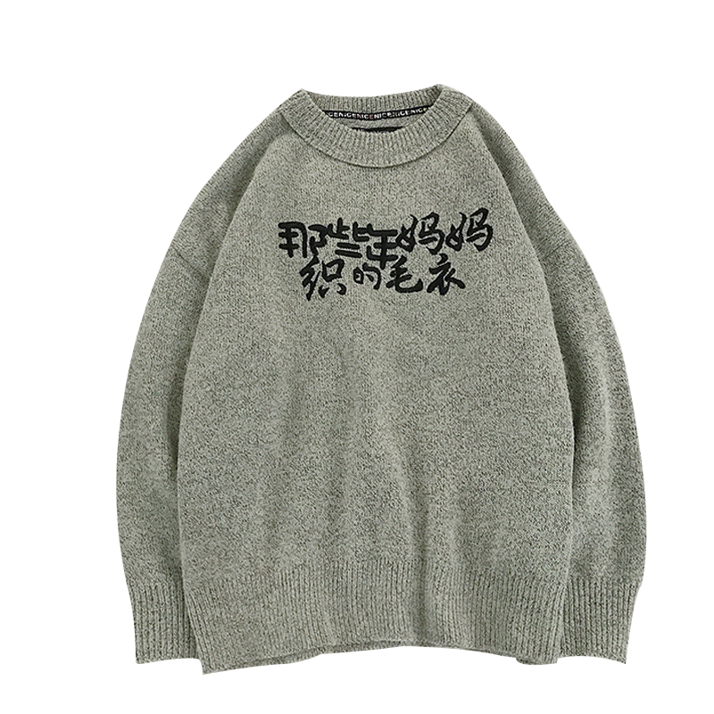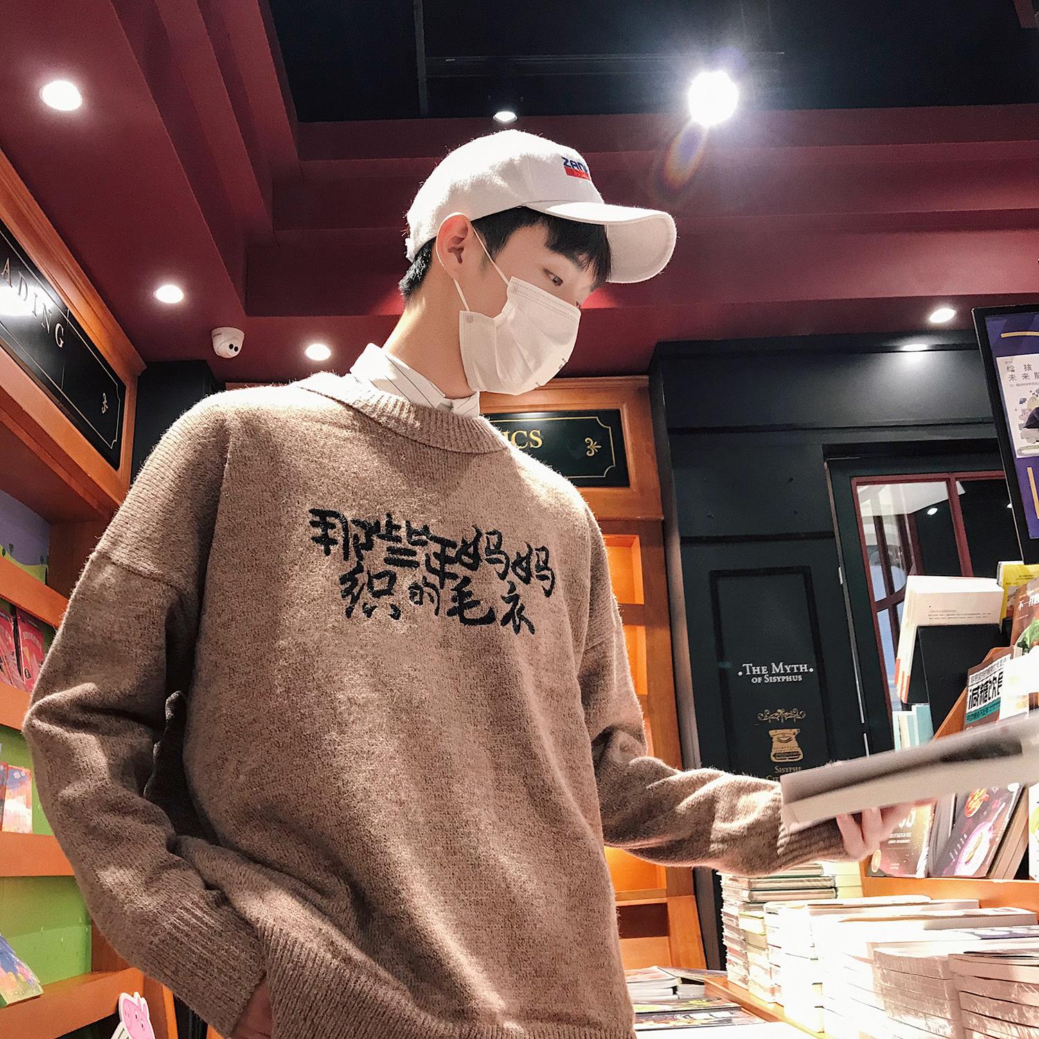 韓版學生港風印花秋季男士寬松毛衣潮流男裝圓領休閑情侶裝針織衫