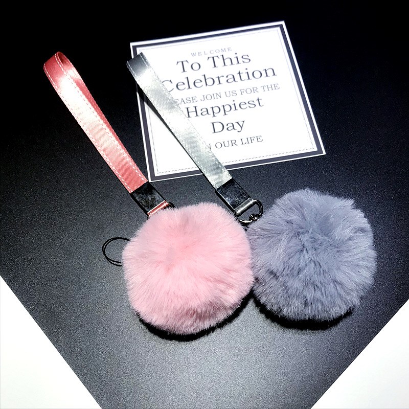 / 單賣毛球腕帶蘋果新款秋冬毛毛短掛繩手機殼通用毛絨掛鏈刮飾女款