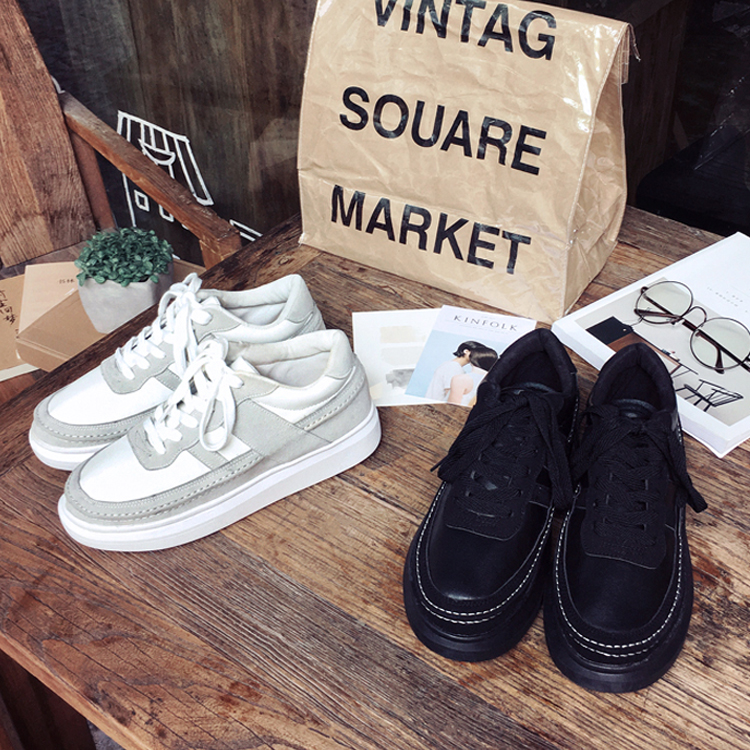 / 男裝韓版厚底磨砂皮拼色男士板鞋低幫運動鞋增高鞋
