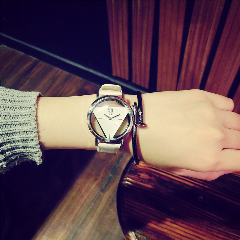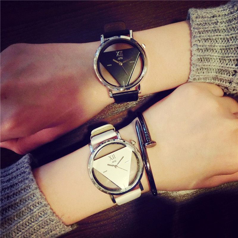 情侶表一對韓版潮流創意倒三角形鏤空手表男女學生黑白簡約石英表